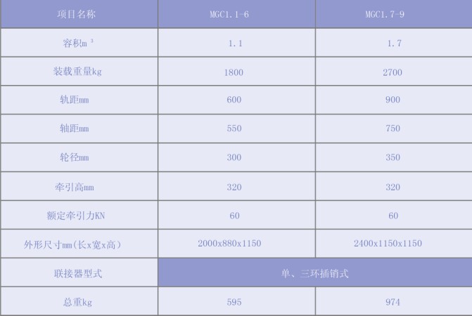 固定式礦車型號(hào)與參數(shù)